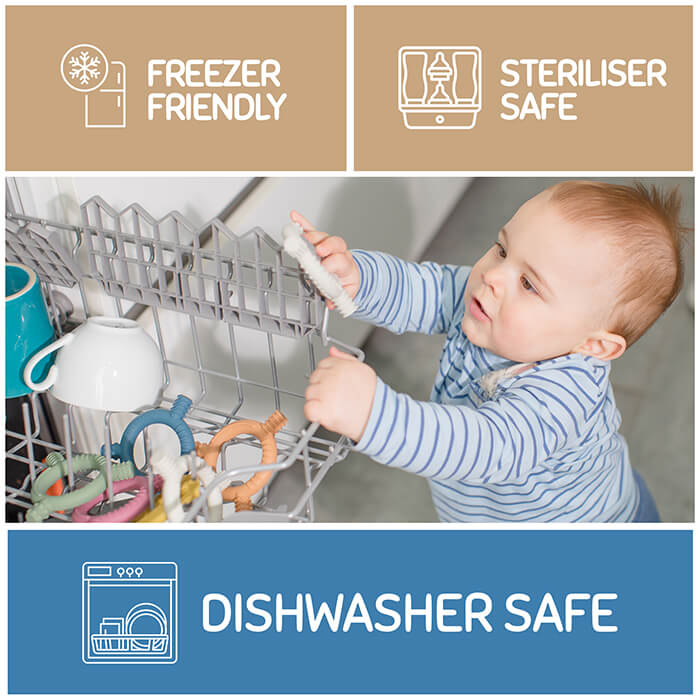 It’s easy peasy to clean all that sloppy drool off with warm soapy water. This teether is both dishwasher safe and steriliser safe. It’s also freezer friendly for when you need that extra bit of soothing cold relief. Ice ice baby. - SILKY SOFT